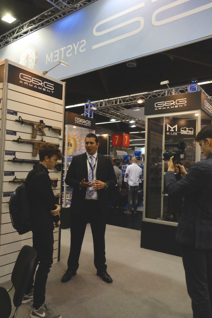 Next for him was to meetup with Charlie Suarez of G&G Armament, where he presented the products of the company for the year. He started with their Night Vision Goggles (NVG) which we first reported as the Lucie-Style one and got a lot of buzz in the community. From there he shows the G&G Gas Blowback Pistol Series starting with three pistols: GPM92, GPM1911, and their own in-house design, the GTP 9. They also fully-licensed Knights Armament AEGs, and shows the ARP 9, G&G’s AR-style AEG that has a 9mm-style magazine.