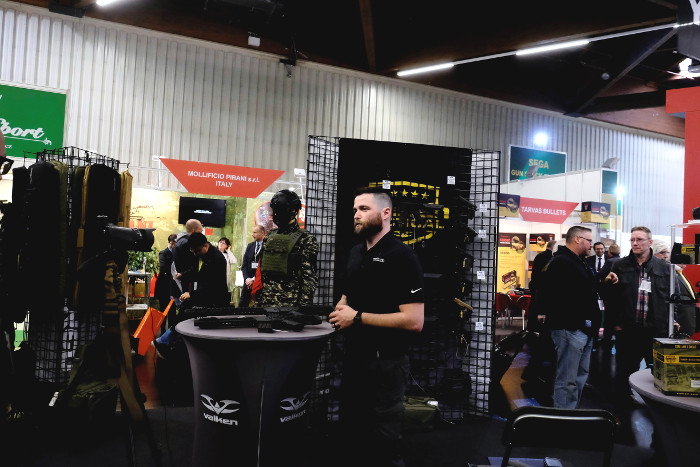 I meet up with Masterchief back at Hall 7, at the booth of Valken Tactical, where Josh shows the line-up of the company this year. He explains that their Battle Machine line, which started with the entry level Polymer series, is now moving into the high-end metal series which they call the “Allow Series”. They have MOD-C CQB Variant of the Battle Machine line as well as well as their news Accessories line, showing the Crane-stock that is designed to have a battery compartment for the rear-wired gearbox. They also have the enhanced pull-string 300-round high capacity magazine for AEGs. He also shows Tango Series of uniforms which they launched in 2016.
