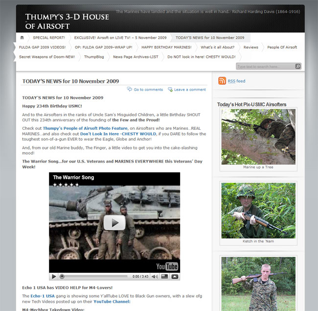 So if you're looking for good photos, reviews, videos, and event announcements at one place, without waiting for magazines or browsing at Youtube to look for those good videos, Thumpy brings you these. His blog is a helpful place for those who are looking into more airsoft information apart from the usual airsoft forums, and news sites.
