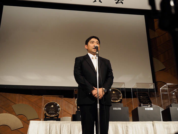 He then introduced the Tokyo Marui personnel, numbering over a hundred, who made it possible for the company to grow and win awards to the loud applause of the guests.