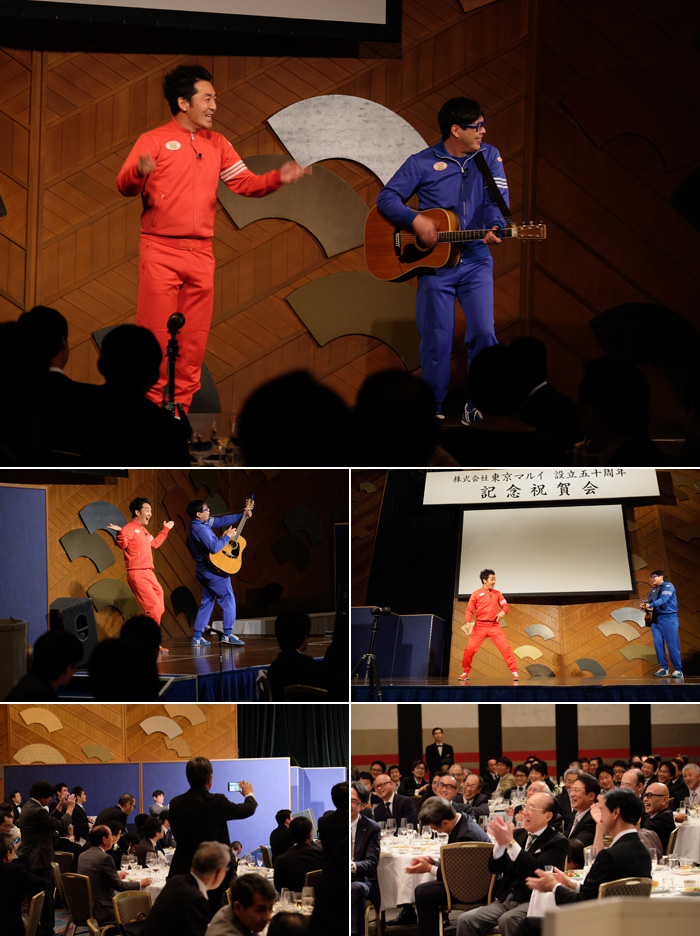 As the night wore on, the attendees were entertained by the comic duo, Tetsu & Tomo, famous amongst old and young audiences for their comedy act on NHK, Japan's main broadcaster. They are always recognised by their red and blue jerseys.