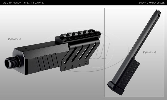 - Long size magazine (100 rounds) and Mount rail will be released. Accessories as Optic Site and Silencer are mountable on Mount rail.