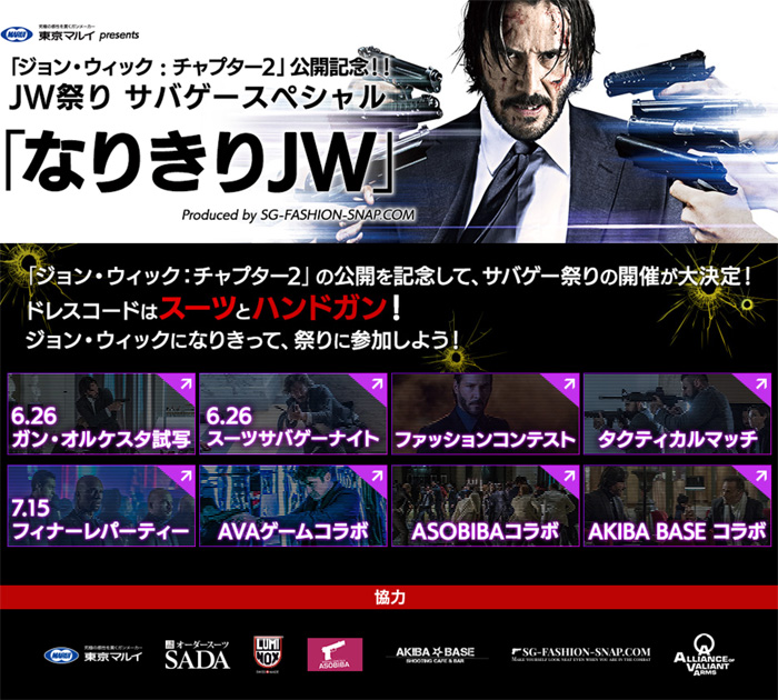 The John Wick Survival Game Festival will be produced by SG-Fashion Snap, the website the focuses on survival game fashion showing the various loadouts and costumes that airsoft players in Japan wear. What SG-Fashion Snap.