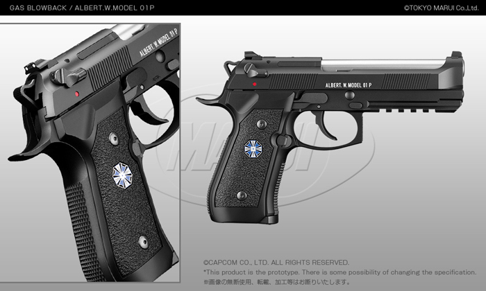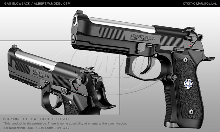 - Blue umbrella medallion of “UMBRELLA CORPORATION” which appears in “BioHazard 7” is embedded in the grip.