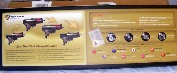 Also included in the bottom of the box the various markings that can be expected on receivers from Top Tech's AEGs with the new pneumatic blowback.