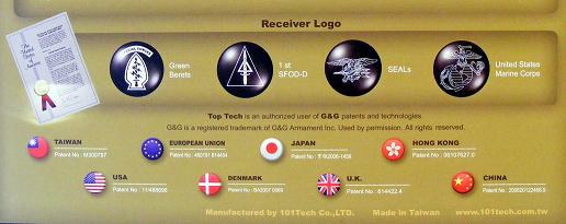 Christmas came early to Bulletproofmike as the package arrived earlier than usual, courtesy of Jack Tsai of G&G Armaments. The package arrived in less than 4 days since G&G sent it to us here in the UK. The packaging is well made, in black colour background, with the Top Tech name and a colourful M4 illustration on the box cover. On the bottom of the box, you'll see the pneumatic technology description, other Top Tech products, and their Patent certification to warn those who plan to copy the technology that they have no chance of doing so as the patent's already been granted.