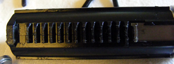 - Piston has the first teeth out, polycarb