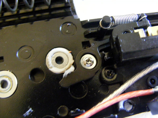Now time to open up the gearbox after removing the blowback mechamism. Now, as we mentioned above, the gearbox is of the highest quality that we've found in any stock AEG. Bulletproofmike stated that this is comparible to the build quality that Systema follows, which means a lot. So what do we see here? Grease is good and evenly spreadout, wiring is topnotch, and here is our list further: