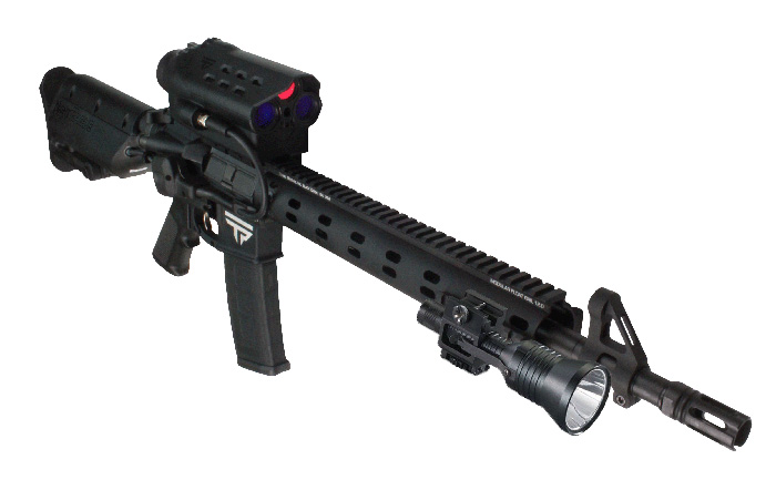 Having a range of 400 yards, the Night Eagle incorporates an infrared sensitive CMOS sensor. Depending on the strength of the IR Illuminator, this allows the shooter to engage targets up to 200 yards at night. With the RapidLok Target Acquisition and Fire Control, the shooter pulls the trigger which engages target tracking and upon completing the trigger pull, the rifle is fired with the target being hit. This process of target acquisition, tracking and elimination has a Time-To-Kill (TTK) of 2.5 seconds.