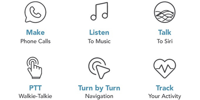 Upon pairing and using the free “Ahead” mobile app, you can use it to make hands-free phone calls, track your activity, listen to music, get turn by turn by navigation instructions, talk to Siri (if you use an iPhone), and use it as a Push-To-Talk (PTT) device which for those in airsoft allows communications amongst members of an airsoft team.