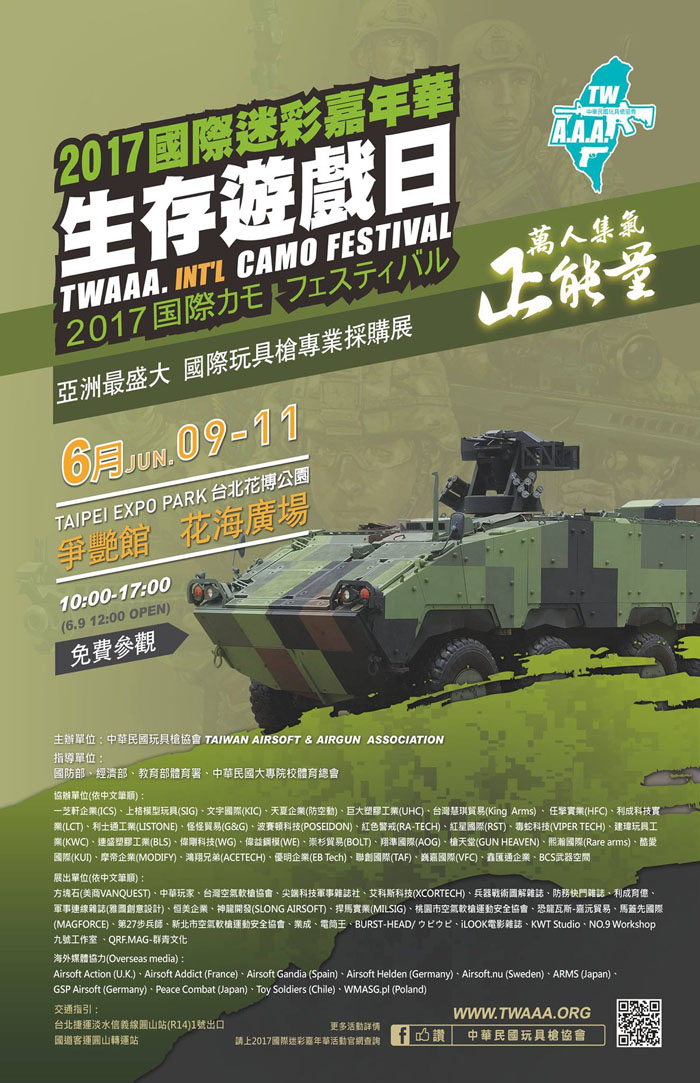The next red letter day in Airsoft will be in the Far East, on the island of Taiwan where the TWAAA International Camo Festival 2017 will take place from the 9th to the 11th of June 2017. The organization has been holding this event since 2015 and this event is getting bigger each year with more activities taking place.