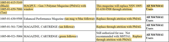 Soldier Systems have provided a link where to find the document, but took a screenshot regarding the replacement of the magazines as shown in the image below so you don’t have to scroll down looking for the entry: