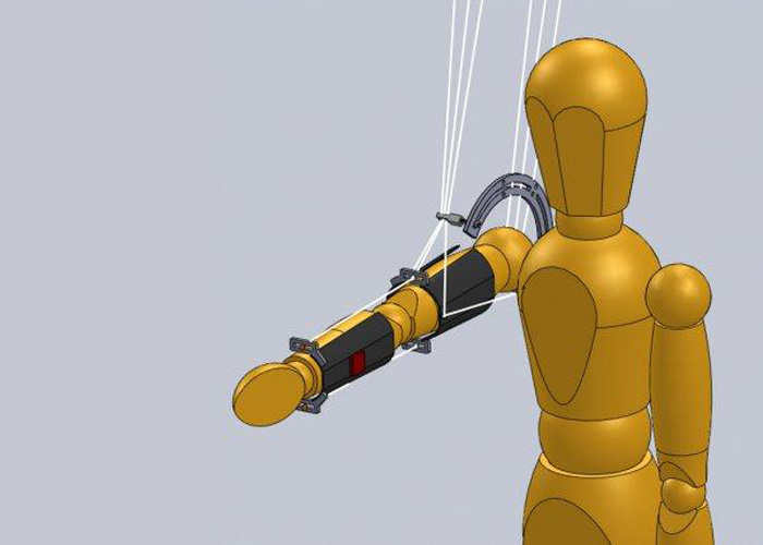 The MAXFAS is a series of cables and sensors that is strapped to the soldiers arms. These sense the movement of the arm and pull the arm accordingly like a puppet on a string. There are gyroscopes and accelerometers detecting the movement and sending the information to the microchip which then will distinguish voluntary or involuntary motions.