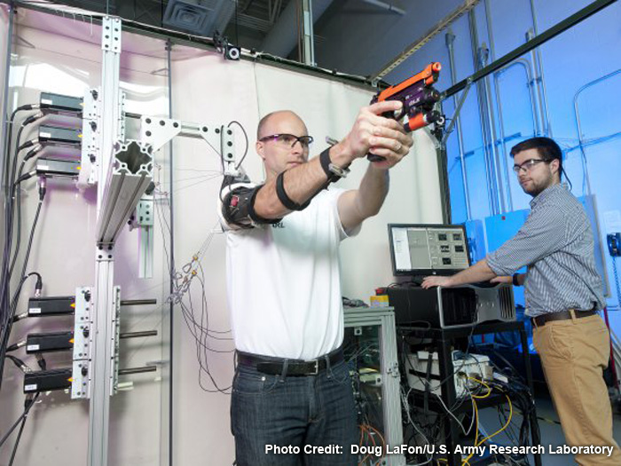 In a report at Army.mil, U.S. Army Research Laboratory (ARL) researcher Dan Baechele has developed a prototype mechatronic arm exoskeleton called MAXFAS or the Mobile Arm eXoskeleton for Firearm Aim Stabilization. By its name itself, it helps the soldiers develop shooting proficiency with better stabilized aims, just like the stabilization features in video and still cameras, with which one can shoot an image handheld steadily without the aid of a tripod. It cancels out tremors in the arms while aiming, helping the arms develop "muscle memory" for better and steady aiming even under the stress of battle.