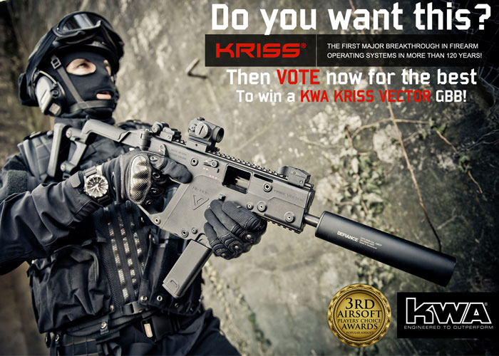 With the voting period of the 3rd Airsoft Players' Choice Awards having started yesterday, we don't want you to just vote without any kind of motivation. With this in mind, these awards presenter, KWA, have brought in their best to even motivate you to vote. The raffle prizes available for the Awards are some of the most sought after products of KWA, and we're giving them away to the lucky voters.
