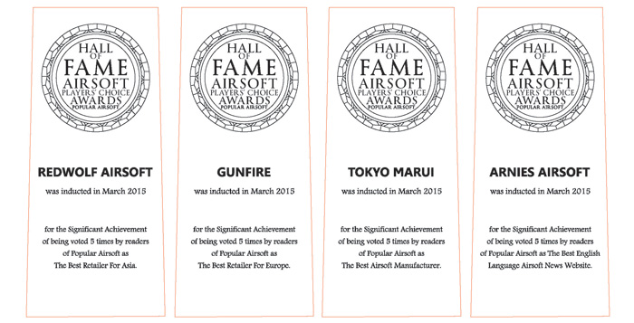 For this year's Airsoft Players' Choice Awards Ceremony, we are announcing the 1st inductees to the Airsoft Players' Choice Awards Hall of Fame which is an award for companies, individuals, organisations, and products which have made a significant achievement in the Airsoft Players' Choice Awards.