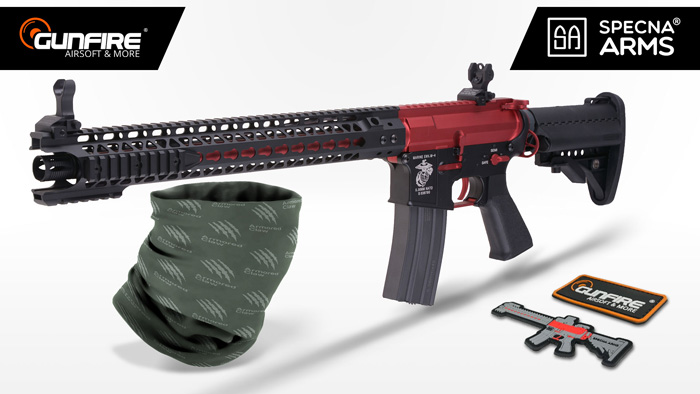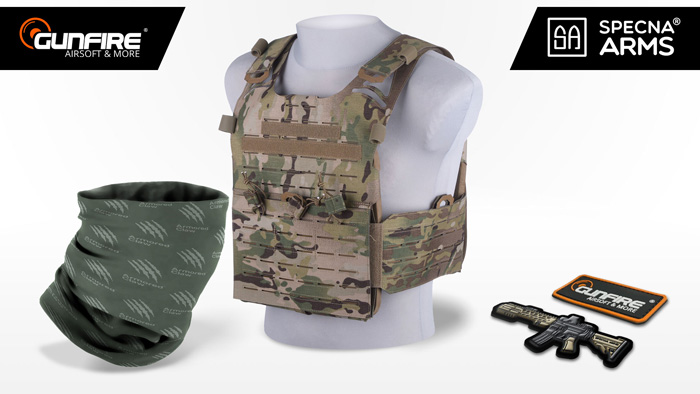 For the Europe-based airsoft player, raffle prize sets from Gunfire and Specna Arms: