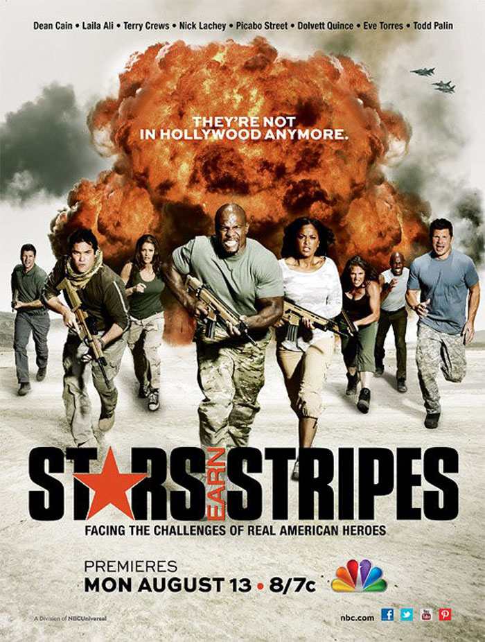 Now speaking of "Combat Missions", it seems to have a reincarnation with a twist. With an eye on ratings, Mark Burnett, the King of Reality TV, together with Dick Wolf and David Hurwitz, has put together "Stars Earn Stripes" and will be shown on NBC. "Stars Earn Stripes" is a celebrity-studded "Combat Missions" and some of the celebrities are familiar to you, especially Dean Cain, boxing champ Laila Ali, and of course a personal favorite, Terry Crews who cracked me up in "White Chicks."
