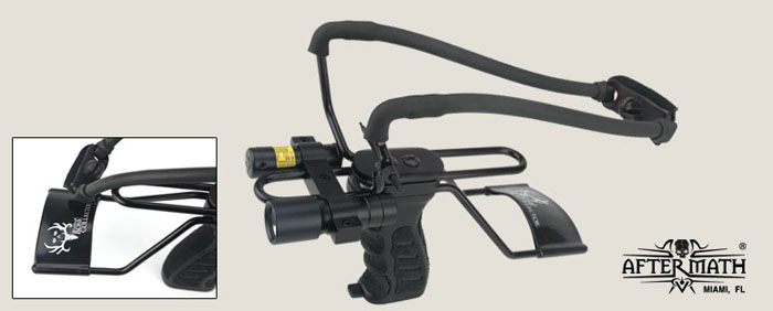 If that's not enough for you, then go something for more tactical looking such as this Bone Collector - Sport Slingshot with Laser and Light from Aftermath Airsoft. That's right from a company that sells airsoft guns on behalf of GAMO outdoors. It comes with a taclight, laser sight, and a pistol grip that it won't look out of place with your guns and gear. Huntinglife.com finds it fun and accurate to use, so this might be really good to use for skirmishes.