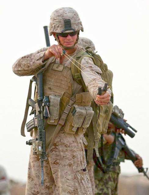 Why not? When your AEG ran out of batteries, your gas magazines have also expelled the remaining gas they can, and your target can still take potshots at you, what are you going to do? Even if you carry that dummy knife, you're still too far from crawling up from behind. So why not use a slingshot instead and use it to fire BBs at him or her? That way, you can still put up a fight, keep your hunter at bay and be able to retreat back to where you can have fresh batteries or a fill up your gas magazines.