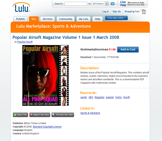 All past issues, or archives of the Popular Airsoft Magazine will be made available at Lulu.com, starting with the maiden issue (Volume 1 Issue 1 March 2008). So you won't be missing any issue at all. You can still download the past issues from there whenever you can't find the archived copies at the magazine site.