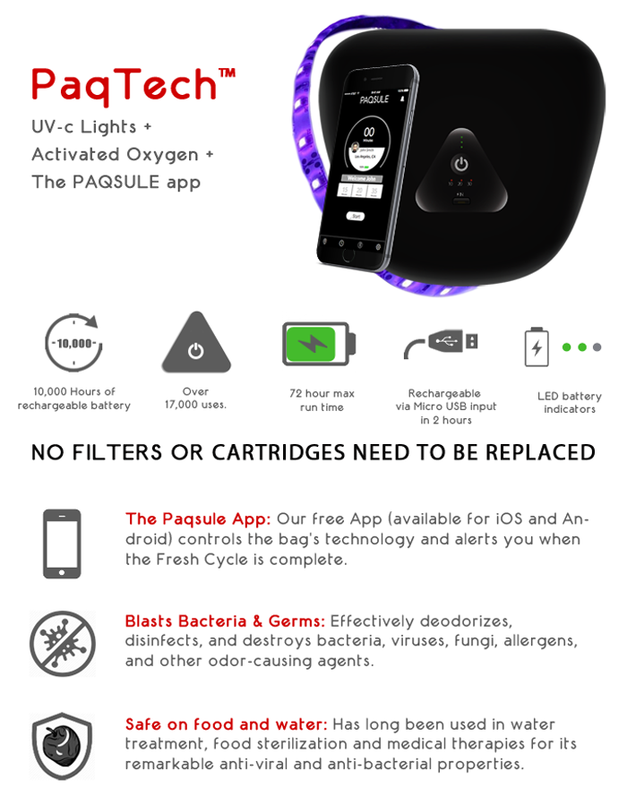 I’m already sold to what this bag does. But if they make a tacticool version, I’ll be in love with the company behind this. Not yet on the market as it is raising funds on Kickstarer, Paqsule is a bag that can “deodorize, sanitize and kill bacteria, keeping your bag and everything inside smelling FRESH!”